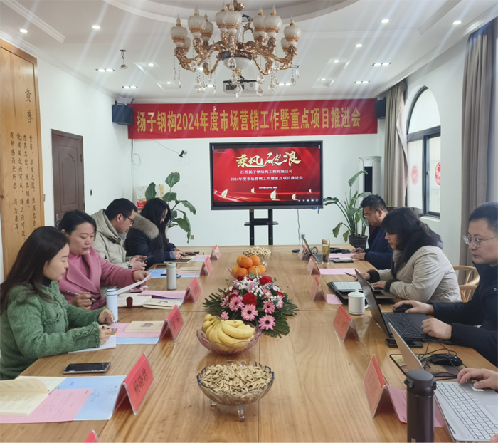 2024年2月26日,江蘇揚子鋼結(jié)構(gòu)工程有限公司召開了2024年市場營銷工作暨重點項目推進會,董事長余秀萍,總經(jīng)理王旺、商務部及各辦事處等人員參加了會議?!?/div>