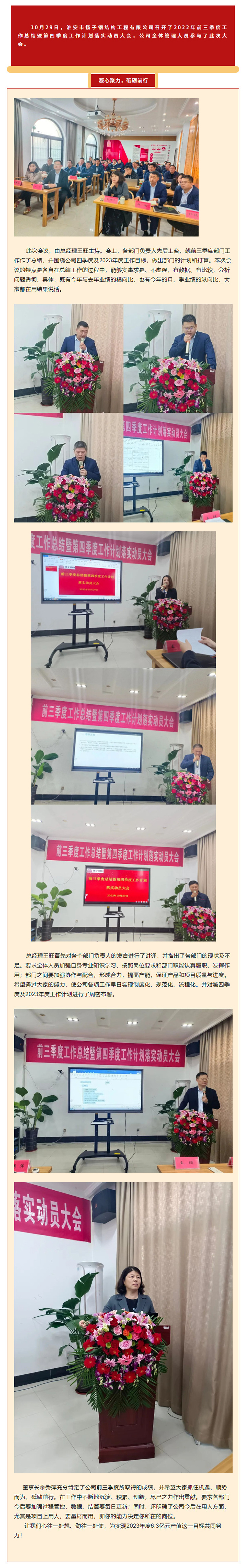 揚(yáng)子鋼構(gòu)召開2022年前三季度工作總結(jié)暨第四季度工作計劃落實(shí)動員大會