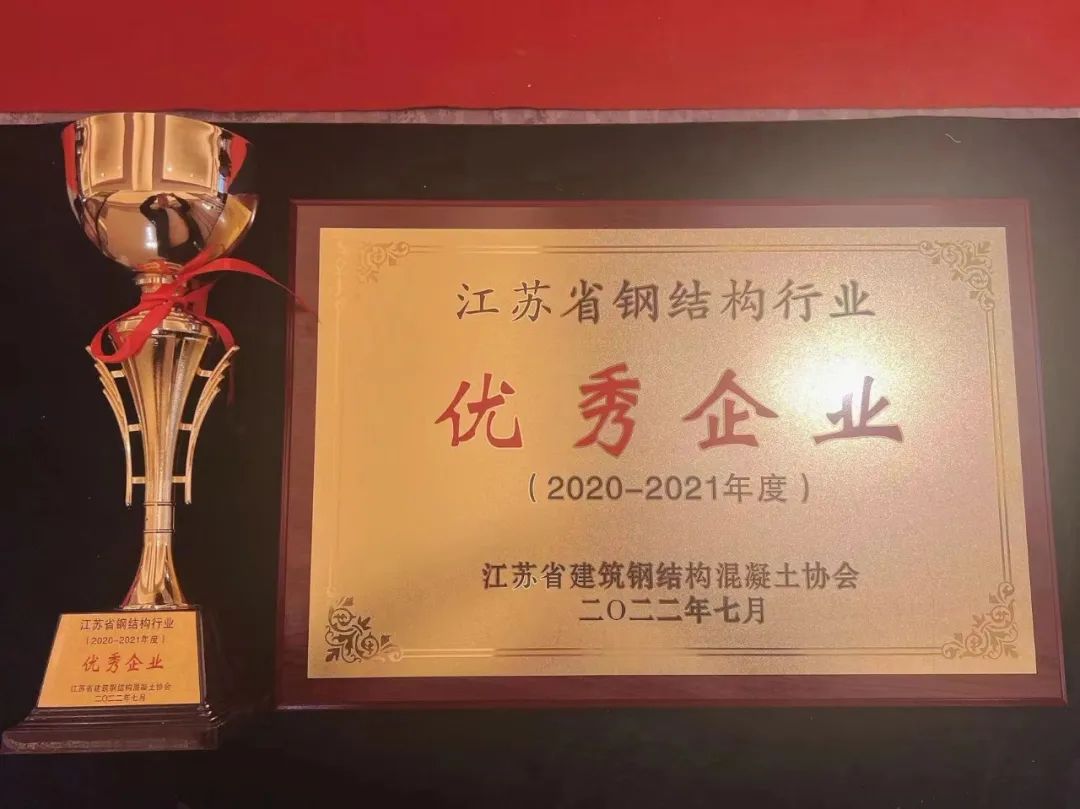 會議期間,還舉行了“2020-2021年度江蘇省鋼結(jié)構(gòu)行業(yè)優(yōu)秀企業(yè)”、“2020-2021年度江蘇省鋼結(jié)構(gòu)行業(yè)優(yōu)秀企業(yè)家”的頒獎典禮。董事長余秀萍上臺領取了證書。