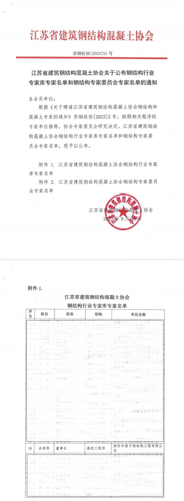 2023年江蘇省建筑鋼結構混凝土協(xié)會為引領行業(yè)發(fā)展,給政府、會員提供更優(yōu)質(zhì)的服務,根據(jù)蘇鋼砼協(xié)(2023)2號文件精神,決定在院校、科研設計院所、企業(yè)等領域聘請鋼結構和混凝土相關專業(yè)的專家。文件要求受聘的鋼結構混凝土專家不僅具備良好的職業(yè)道德和敬業(yè)精神,有意愿、有能力履行專家職責的基本條件,且具備正高級職稱,從事鋼結構或混凝土領域相關工作的專業(yè)條件。      淮安市揚子鋼結構工程有限公司(以下簡稱“揚子鋼構”)董事長余秀萍成功入選,被江蘇省建筑鋼結構混凝土協(xié)會聘請為江蘇省鋼結構行業(yè)專家?guī)鞂<摇?/span>