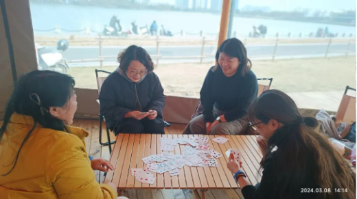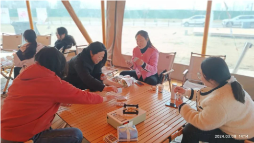 豐富精彩的拓展項(xiàng)目結(jié)束后,女神們?cè)趲づ窭锲访朗?,網(wǎng)紅點(diǎn)打卡,喝茶聊天,打牌休閑等。