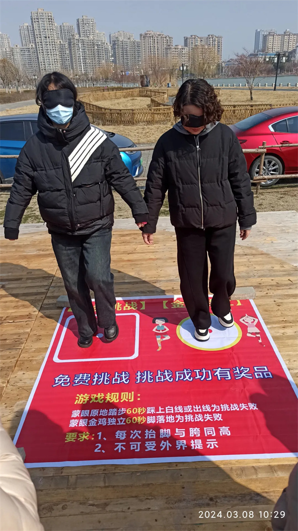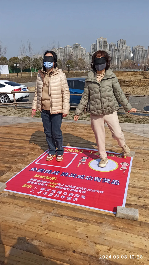 個(gè)人挑戰(zhàn)項(xiàng)目是“原地踏步走和金雞獨(dú)立”,女神們聽(tīng)完比賽規(guī)則覺(jué)得異常簡(jiǎn)單,可在參賽中,大家都覺(jué)得難度較大,好在大家都有“參與第一,比賽第二”的精神,挑戰(zhàn)成功者毫無(wú)保留地向待賽人員傳授經(jīng)驗(yàn),比賽始終進(jìn)行在愉快和歡樂(lè)的氣氛中。本環(huán)節(jié)最終每組產(chǎn)生一名挑戰(zhàn)成功者,大家鼓掌表示祝賀。