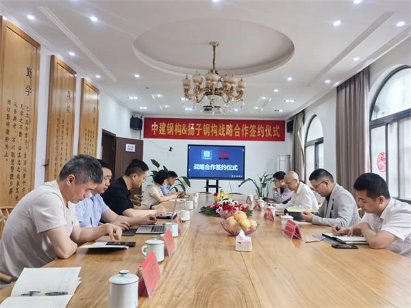 2024年6月7日上午,江蘇揚子鋼結(jié)構(gòu)工程有限公司與中建鋼構(gòu)股份有限公司智能制造研究院“戰(zhàn)略合作簽約儀式”在江蘇揚子鋼結(jié)構(gòu)工程有限公司一樓會議室舉行。中建鋼構(gòu)股份有限公司智能制造研究院院長馮清川、中建鋼構(gòu)江蘇有限公司總工周軍紅及科研人員吳永強、陸遠威,江蘇揚子鋼結(jié)構(gòu)工程有限公司董事長余秀萍、總經(jīng)理王旺、副總張瀅等人出席了簽約儀式。