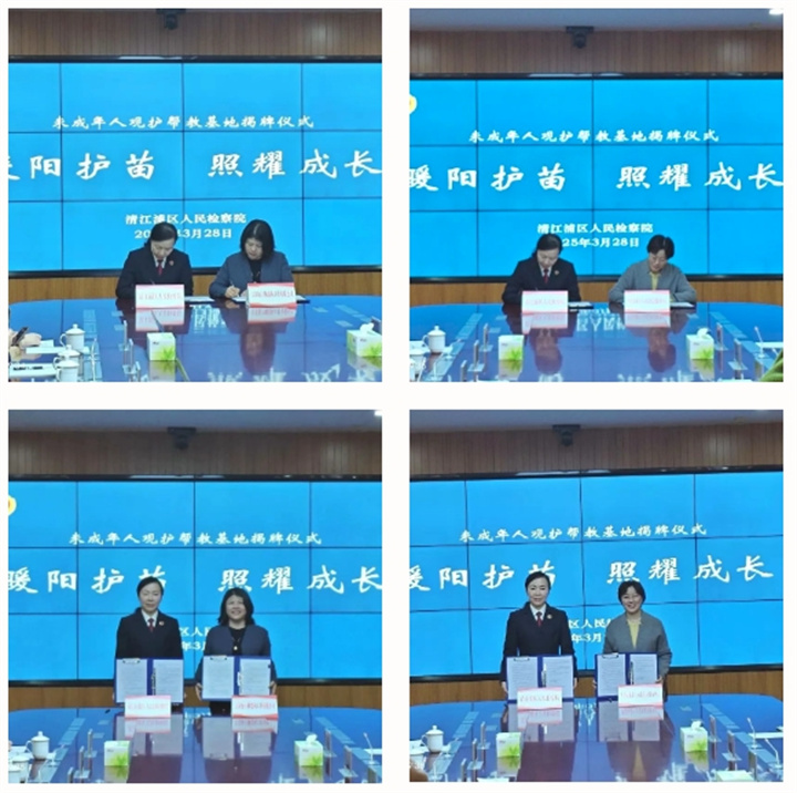 會(huì)上,清江浦區(qū)人民檢察院臧雪青檢察長(zhǎng)與江蘇揚(yáng)子鋼結(jié)構(gòu)工程有限公司余秀萍董事長(zhǎng)、清江浦區(qū)絲語(yǔ)未成年人司法社會(huì)服務(wù)中心共同簽署了《未成年人觀護(hù)幫教基地合作協(xié)議》,并舉行了未成年人觀護(hù)幫教基地揭牌儀式。